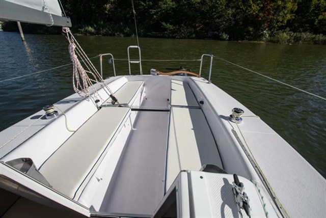 - Adjustable Backstay Adjustable Stern Mast Carrier with Bow Pulpit Mast Holder White Vinyl Interior Cushions & Cockpit cushions Adjustable Outboard Bracket Stern Mounted Boarding Ladder Self Tailing Primary Winches Teak Interior Trim with Cabin Lighting Lots of Storage 12V Electrical System with control Panel Navigation Lights