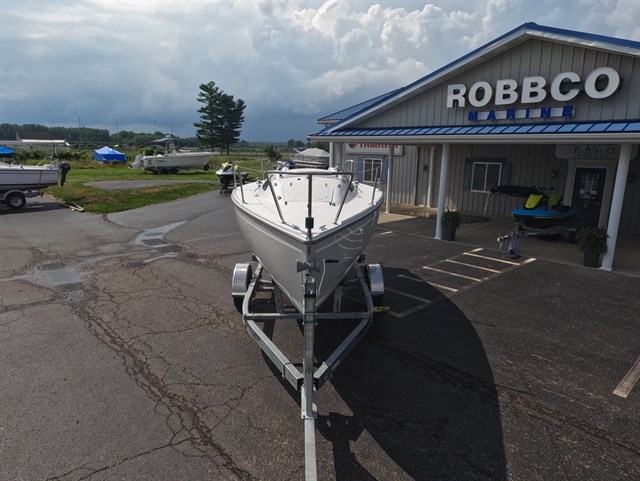 - and easier to maintain than any boat in its class. Includes New Galvanized Bunk Trailer with Brakes Wing Keel - 2'8" Draft Grey Hull / White Stripes 22' Length / 8'2" Beam / Approx. Weight 2