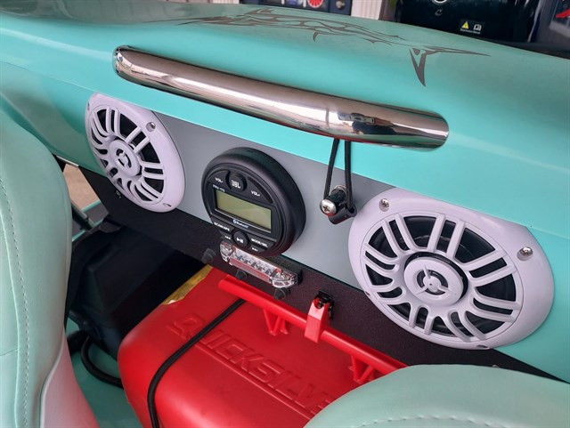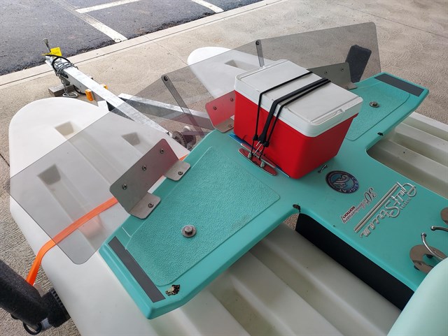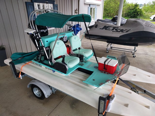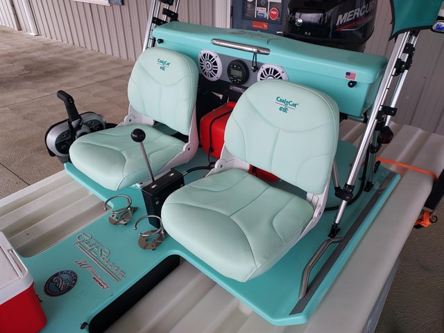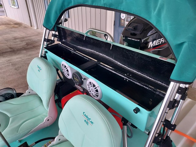 - Lots of Features Including: Bimini Top, Nav Lights, Docking Lights, Stereo System, Cup Holders, Cooler, Splash Gaurd, Rod Holders, Storage Box